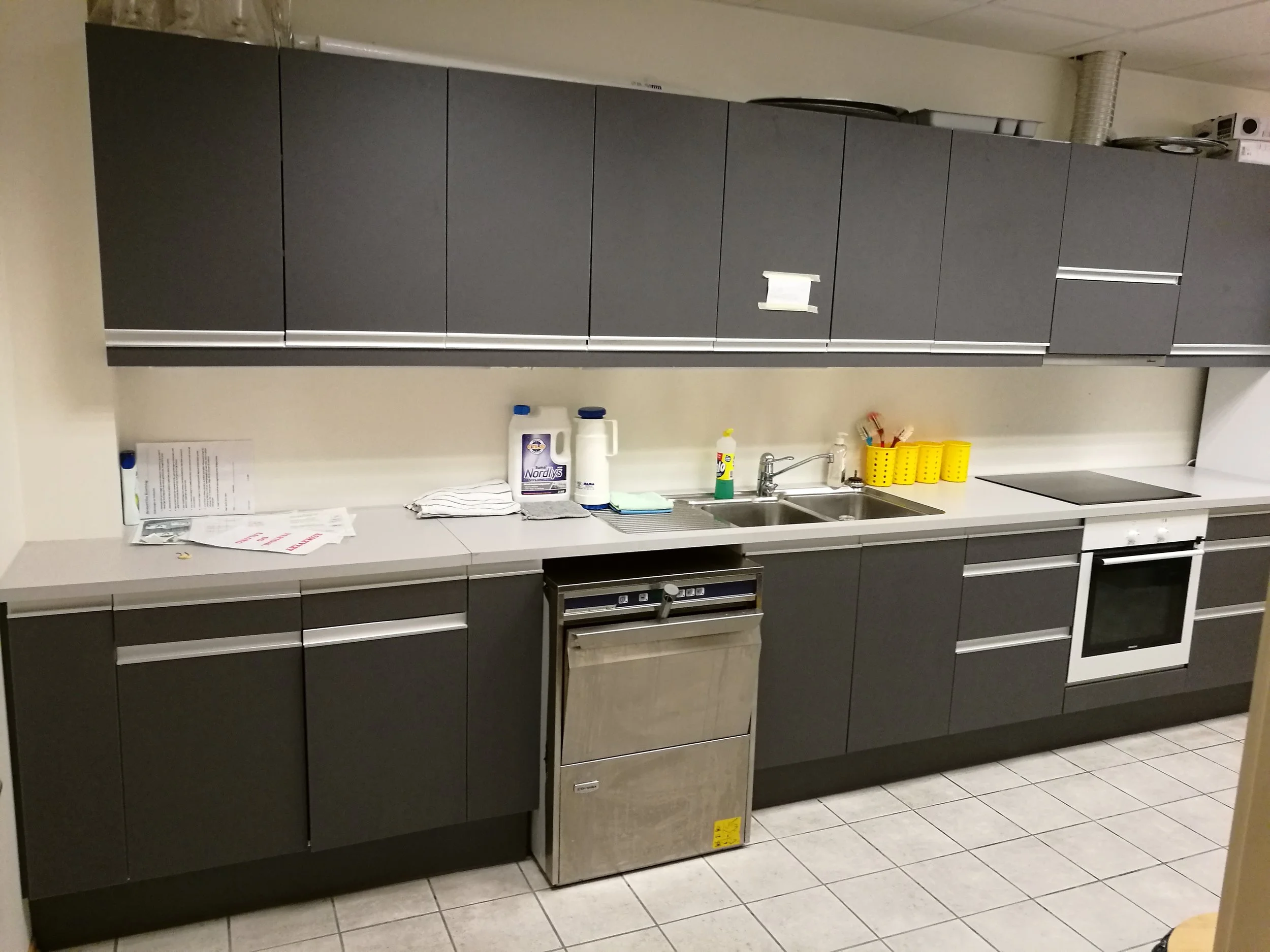 Det er et flott kjøkken i direkte tilknytning til festsalen. Så her kan du kokkelere de herligste retter. Oppvaskmaskin, kaffetrakter og to store kjøleskap (ett med frys).