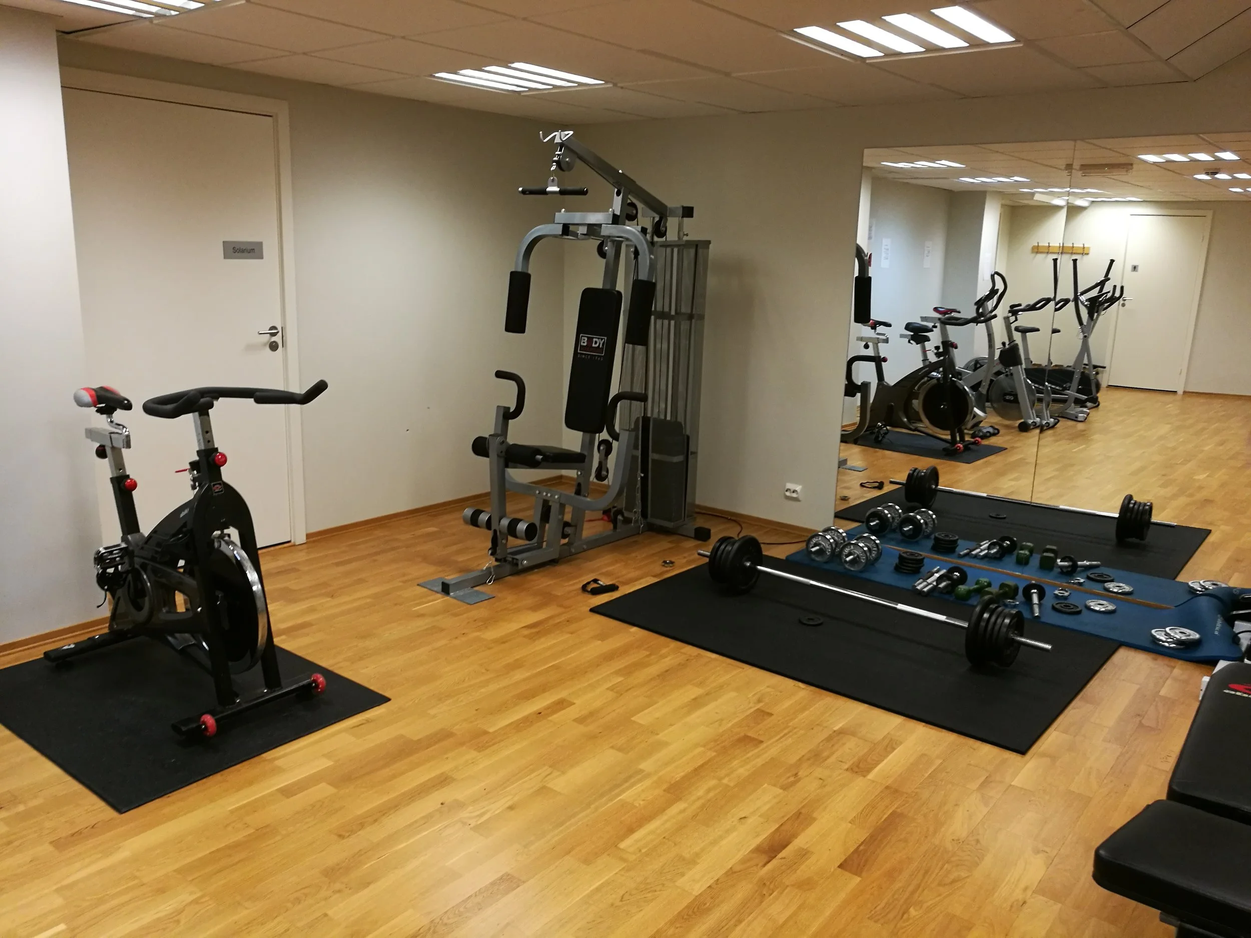 På Helmers Hus har vi et flott og innholdsrikt treningstudio. Selv om snøen laver ned ute, eller isen ligger overalt, så er det ingen unskyldning for ikke å ta en joggetur eller sykkeltur.